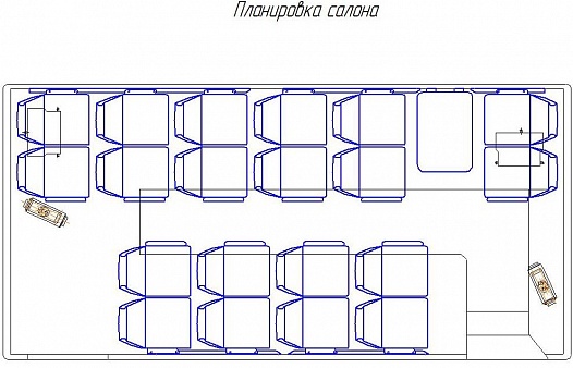 Дополнительно Складной стол. Увеличенная высота прохода до 1940 мм. Заниженный уровень пола. Откидной легкий двухступенчатый трап из алюминиевого сплава. Светодиодные светильники салона, пыле- и влагозащищенные. Верхние багажные полки. Во внутренней обшивке салона применен пластик.